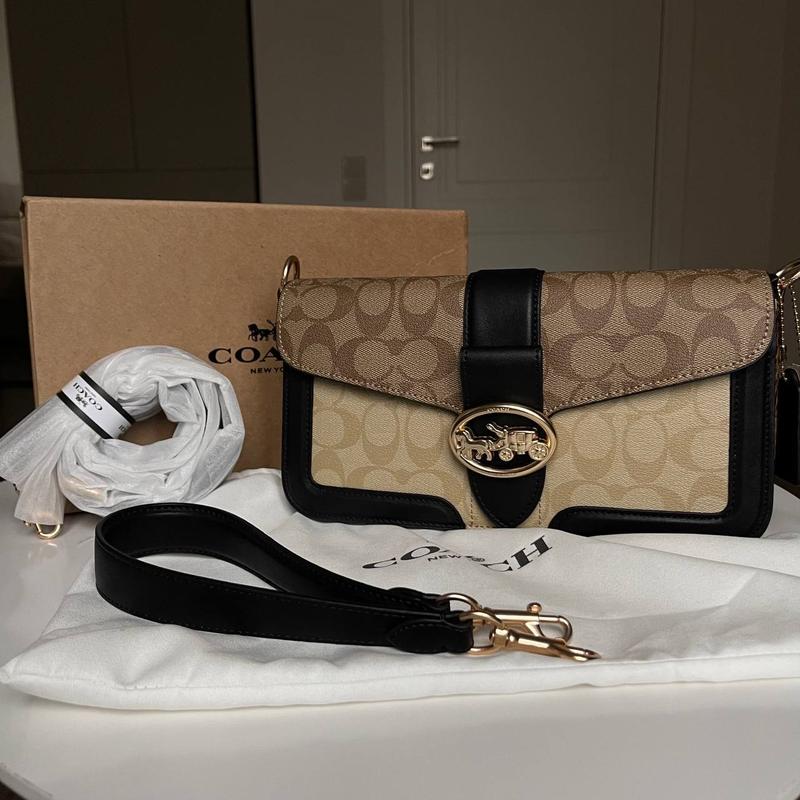 Coach Tabby Shoulder Bag Brown Код: 100 Материал: •Кожа сафьян •металический логотип •Фурнитура золото •подкладка текстиль •два больших отделение и боковой карман •в комплекте две ручки на плече и короткая •все логотипы присутствуют •Комплект: коробка , пыльник Размер : 27*15*7*