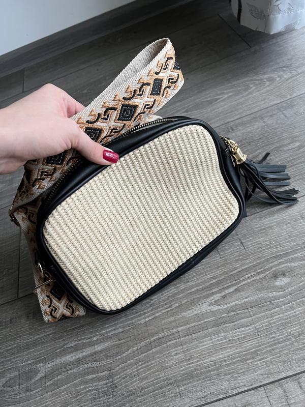 Нова сумка в етно стилі, на ременці вишивка. Ремінець відчіпляється, фурнітура ціла і новенька. Всередині є кишенька на замок.