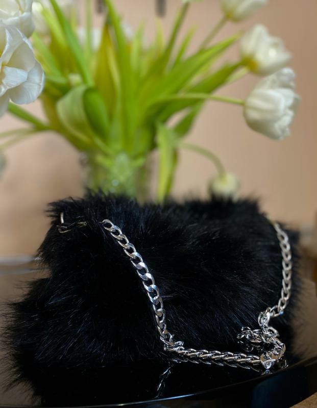Жіноча пухнаста сумка З ланцюжком Чорного кольору Стан хороший Б/у