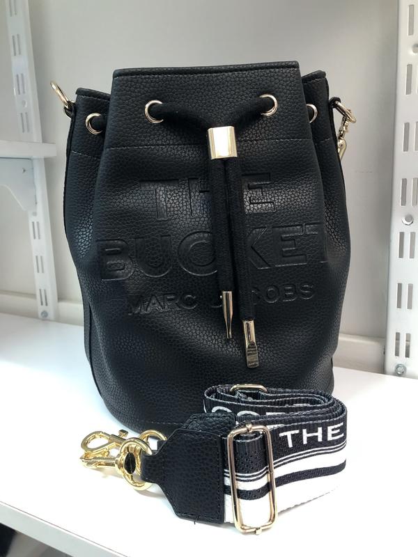 Сумка-торба Marc Jacobs в чорному кольорі. Матеріал штучна шкіра, якісна фурнітура з брендуванням. Текстильна підкладка. В комплекті широкий ремінець, який регулюється. Можна носити як через плече так і на руці. Розмір 26*28см. Низ сумки 19 см. Сумка затягується на затяжки.
