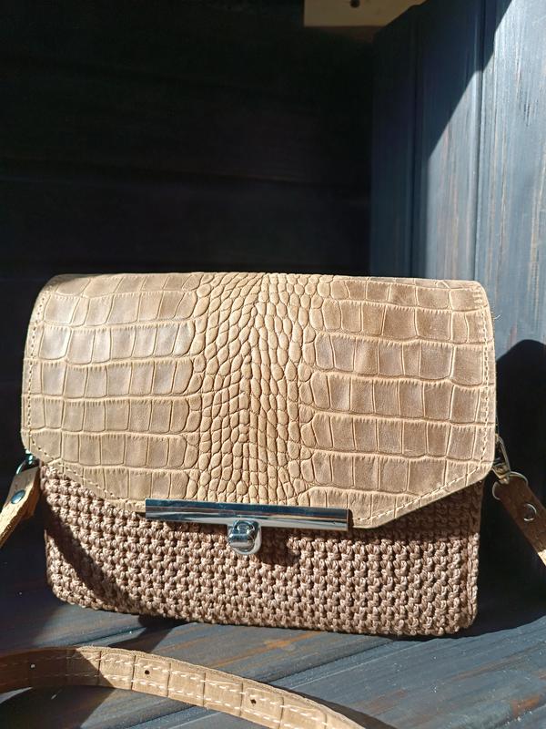 Сумка ручной работы из полиэфирного шнура. Хорошо держит форму, внутри имеет подкладку и кармашек. Кожаная фурнитура