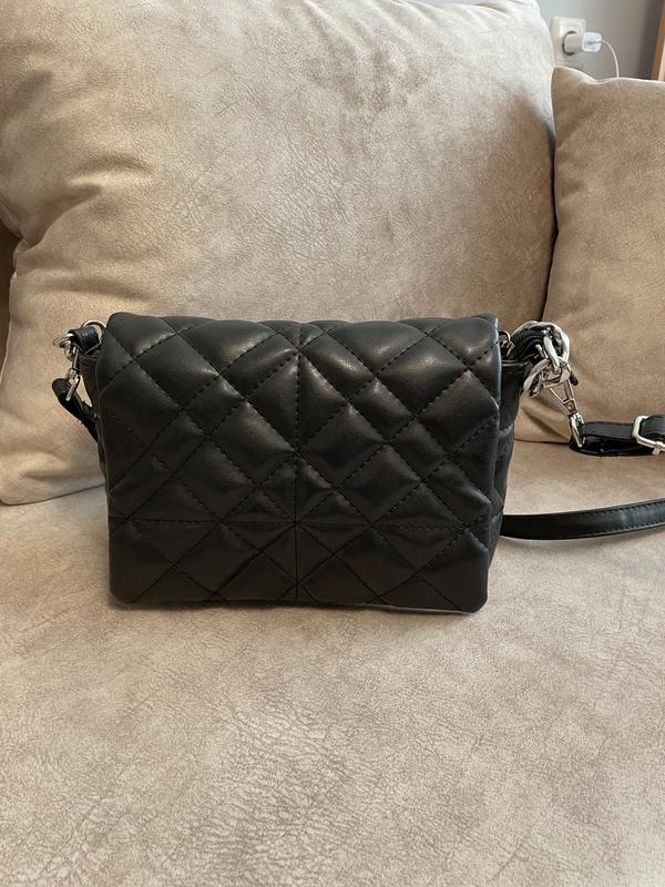 Женская сумка. В черном цвете. Имеет короткую цепочку и удлиненный.