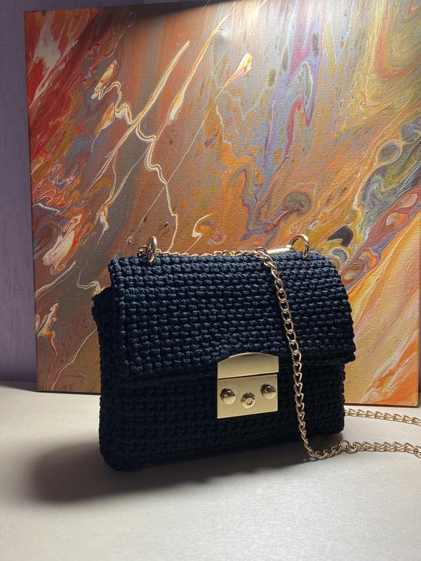 Сумочка из полиэфирного шнура и замочком furla, на подкладке, в черном цвете 🖤. Идеальное дополнение твоего образа🕊. Высота - 12 см. Ширина - 18 см. Товщина - 5 см. В комплекте цепочка 1м, золотого цвета и подарочная упаковка🎁. Стоимость 2800грн.
