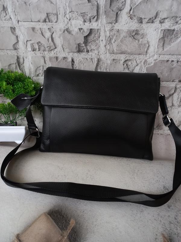 нова натуральная кожа чорна 28 х 18 х 9 см
