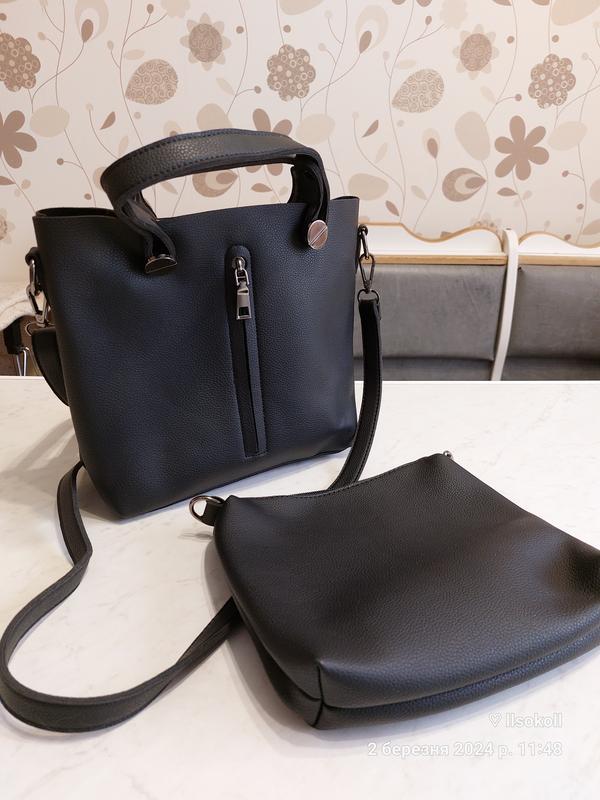 Удобная комфортная сумка 2 в 1. Новая! Эко кожа. Удобный размер. Размер общей сумки 23х33 Дно 7.5 х 22 Ручка 136 Размер меньшей сумки 19х20
