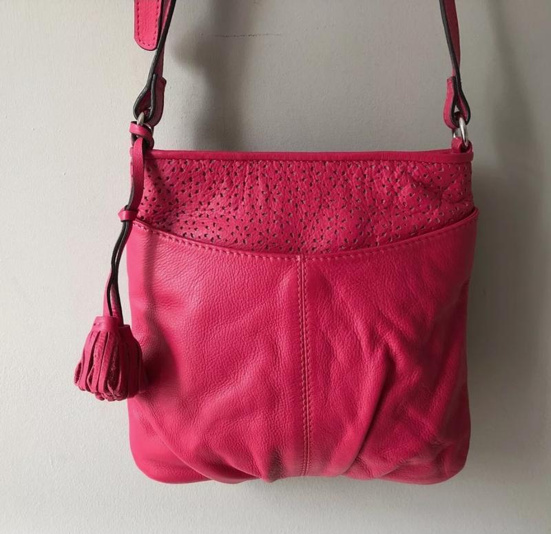 Сумка от Clarks.Натуральная кожа высокого качества.Тактильно приятная.Цвет бомба,насыщенная фуксия. Вместительная,много отделений.Размер 23×24.