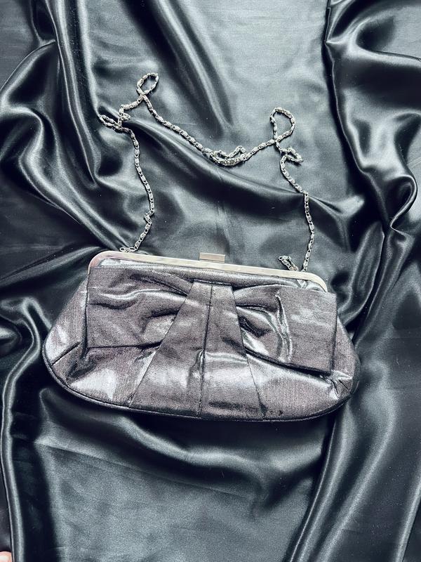 Вечірня срібляста сумка клатч no name В ідеалі, без нюансів Можна носити на плечі або в руках у вигляді клатча Всередині одне відділення та карманчик на блискавці Висота 13.5 Ширина 24 ( верх ), 28,5 ( низ ) Висота ланцюжка 55 Все текстиль 350 грн