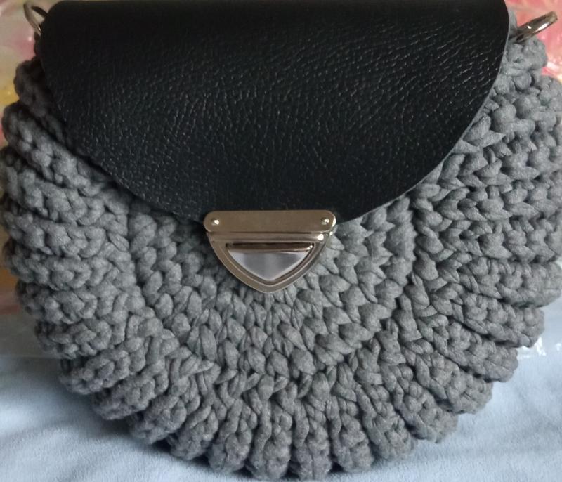 Сумка связана из трикотажной пряжи, плотная, хорошо держит форму, без подкладки. Цвет на первом фото передан точнее гстальных. Фурнитура металл и натуральная кожа. Длина ремешка 130 см. Размеры 24х20х10 см.