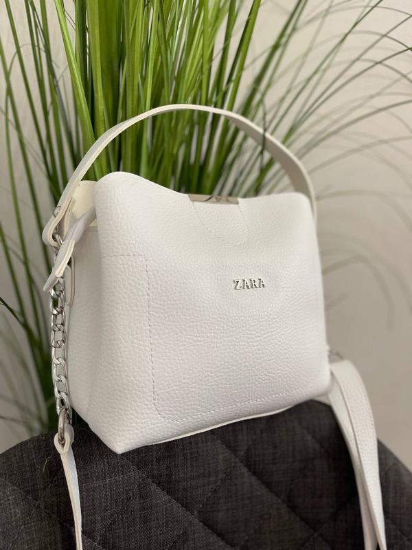 Код 828297 Сумка Зар@ 3 отдела Цвет: белый Черная с красным 3 отдела и кармашки Ремешок регулируется комбинированный и ручка Материал: экокожа Размер : 20/22/10