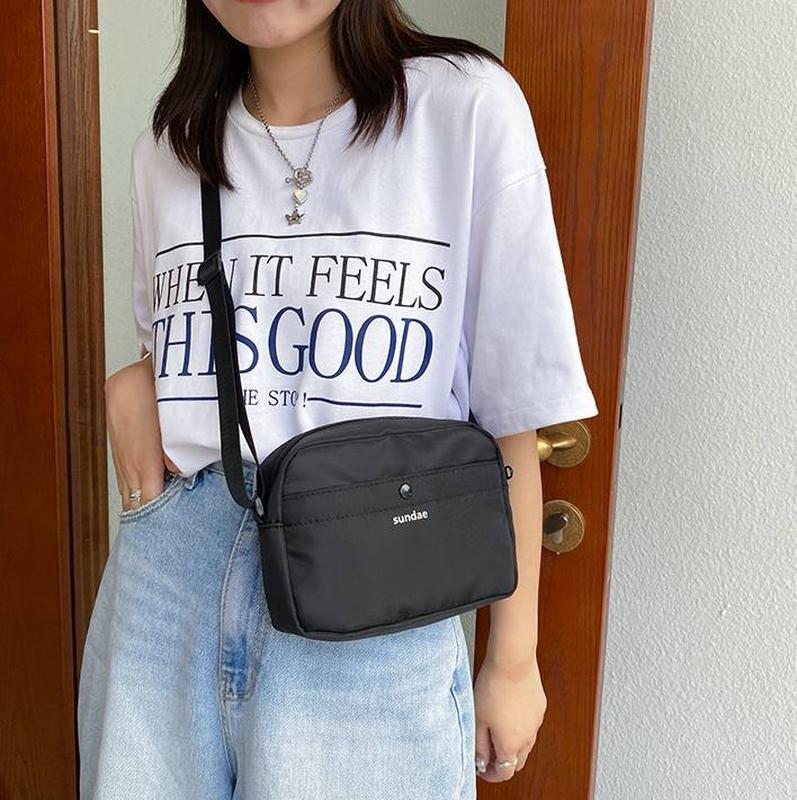 Стильна міська сумочка. Поліестер. Одне внутрішнє відділення та зовнішня кишеня. Закривається на молнію. Розмір: Висота 15 см; Ширина 19,5 см; Ширина основи 5,5 см; Плечовий ремінець 112 см. Колір: чорний Матеріал: поліестер Розмір: міні Плечовий ремінь: з'ємний, регульований ДxШxВ: 195x55x150 мм