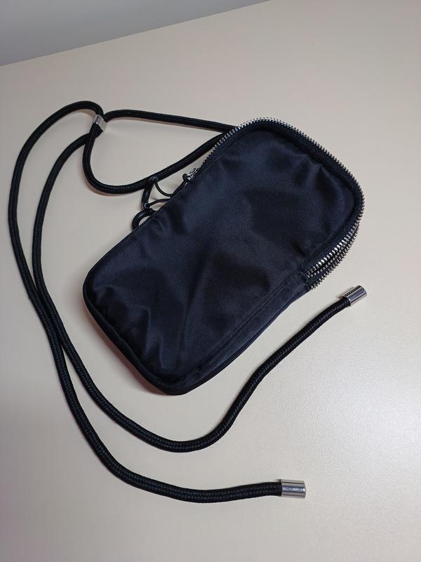 Сумочка из водоотталкивающей ткани, на два отделения на замках, внутри есть кармашки для карт.Пасок с фиксатором длины.