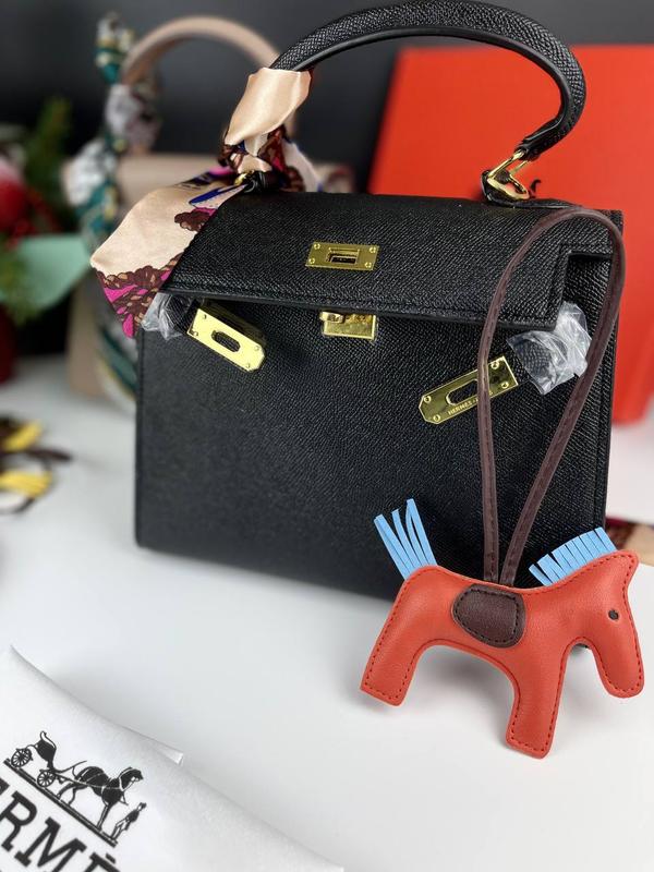 828571 Новинка❤️🔥 Сумка Келлі хустка та коник Розмір: 25 см Матеріал: натуральна шкіра Колір: чорний Форму тримає и дуже зручна ремінець ; платок; коник, коробка та пакет ✅ Ремінець регулюються в комплекті