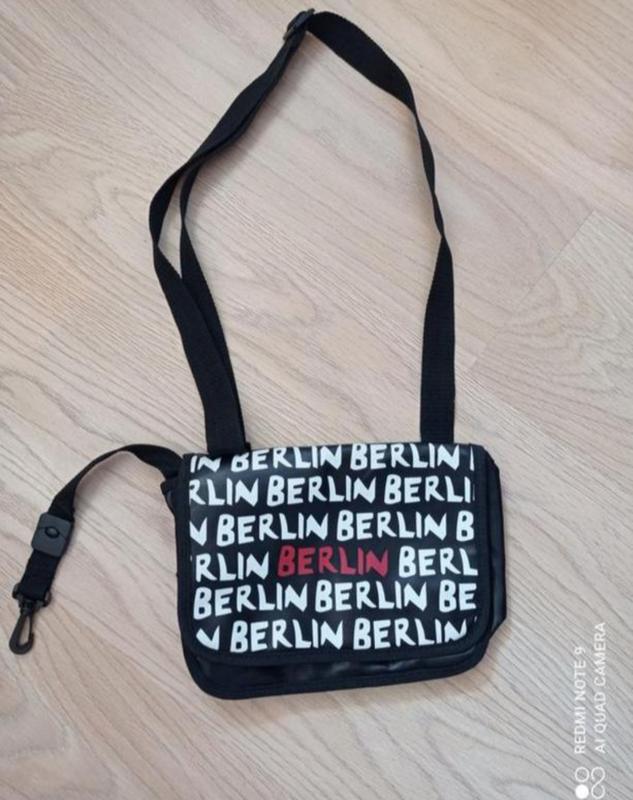 Оригинальная сумка с надписями Berlin черного цвета. Внутри разные отделения. Застегивается на «липучку». Размеры: 28х20 см., глубина - 8 см. Сумка в отличном состоянии, без дефектов и нюансов.