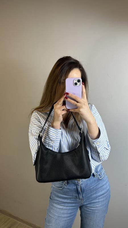 Женская кожаная сумочка, Стильная сумка из натуральной кожи, Маленькая черная сумка на каждый день ХАРАКТЕРИСТИКИ: Натуральная кожа 1 Основное отделение 1 Внутри Металлическая фурнитура Плечевой ремень - 42 см Размер: 26х13х7 см Женская сумка: Современная сумка -- это стильный аксессуар и необходимый предмет гардероба. В традиционном понимании это элемент классического «лука» -- маленькое черное платьице, туфли на шпильке, аккуратные локоны и небольшой лакированный черный вечерний клатч. Запихнуть все или миссия невыполнима! Одновременным недостатком и преимуществом маленькой сумки является её компактность. Изначально было задумано, чтобы в сумочку поместились только самые необходимые вещи: помада, кредитки и ключи. Да, если взять с собой связку ключей и от офиса, и домика в деревне, а также палитру блесков для губ и ряд дисконтных карт из торгового центра на всякий случай, то места может и не хватить. Но в идеале весь список, включая телефон, деньги и документы как раз помещается в мини-сумочку.
