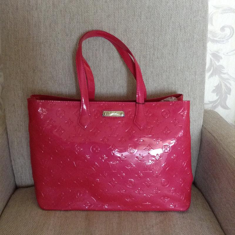из натуральной кожи сумочка LV ярко-розовый цвет фуксия люкс качество лакированная, в наличии!