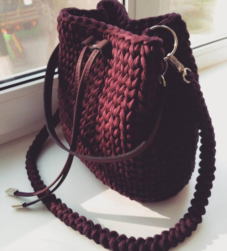 Вязаная сумка с трикотажной пряжи с элементами кожзама.