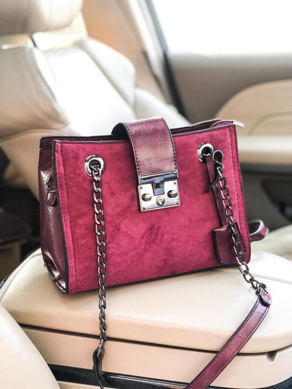 SE0073 Новинка. Стильна сумочка у наявності. З довгим ремінцем. Матеріал еко-шкіра+оксамитовий замш! Якість матеріалу на висоті. Розміри 24*17,5 см.