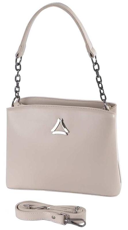 Женская сумка. Под молнией два отделения разделенные карманом перегородкой на молнии, потайной карман на молнии и открытый карман. На обратной стороне сумки карман на молнии. В комплекте регулируемый плечевой ремень и короткая ручка с элементами цепочки. Размер, 22*27*10cм.