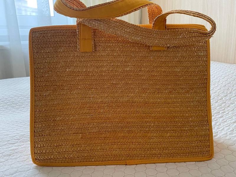 Соломенная сумочка для пляжа и прогулок, большого размера,также в середине есть маленький карман прозрачного цвета