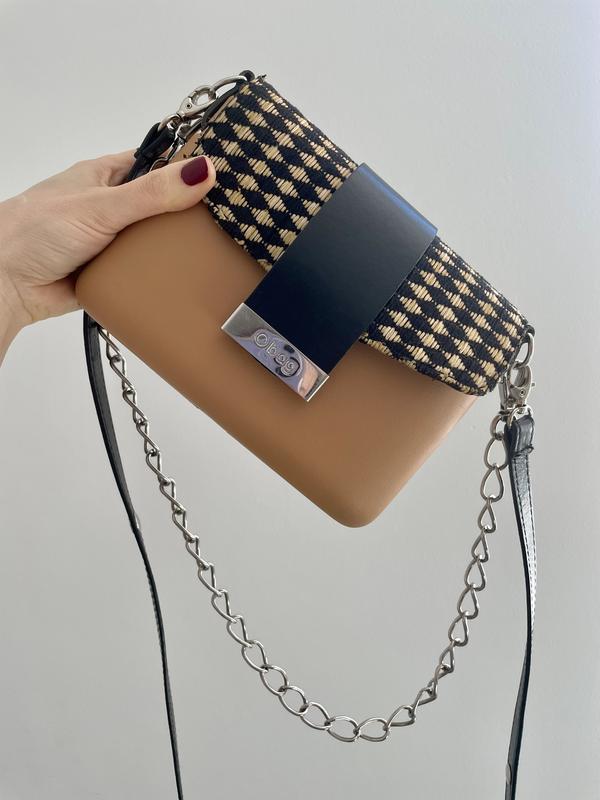 Італійська сумочка конструктор. 21*15 см. В наявності два ремінці один металічний короткий, інший шкірозамінний, довгий , що в середині має дефект позначила на фото, при носінні не видно) дуже зручна, всередині вмістима. Ручки знімаються.
