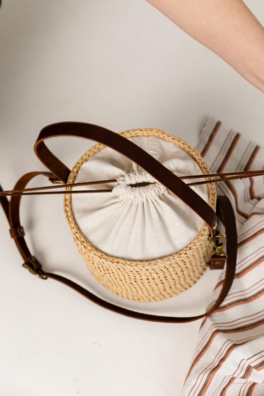 Сумка выполнена из премиум рафии, производства Турции. Донышко укреплено d 20см, высота 17,5 см, на ляной подкладке с кожаным шнурком, внутри карман, кожаная фурнитура, ручка пришивная 53см, от сумки до середины ручки 17 см, съемный кожаный ремень производства birki.furnitura, цена 2800 грн