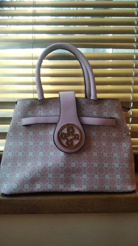 Стан дуже хороший,майже нова.Є тільки один нюанс,на останньому фото видно,трохи по шву лопнула ручка сумки.А так вся решта ідеальна.Є додатково довга ручка,вона ще в бумажці.Ширина сумки 33 см.Висота 22 см