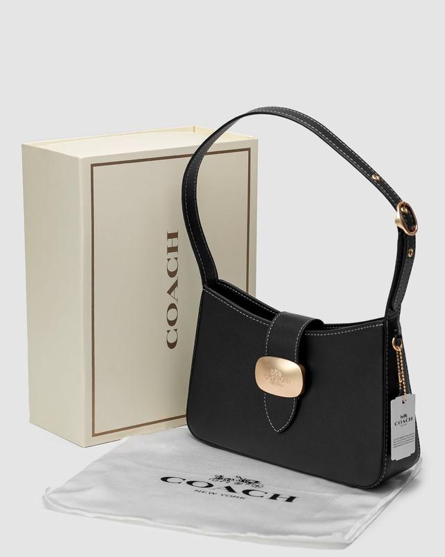 👜 Coach Eliza Shoulder Bag In Black (Арт: 99327) 💵 Цена: 3150 грн 📐 Размер: 25 х 16 х 7 см 🧵 Материал: Кожа 🔎 Описание: Сумка выполнена из гладкой кожи с белой строчкой. Внутри одно отделение, также есть карман на застежке. Подкладка из приятного на ощупь бархатного текстиля. Закрывается сумка на магните-клапане. Фурнитура металлическая и брендированная. Ручка имеет небольшой диапазон регулировки по длине. Комплектуется в брендовой коробке на магнитах и пыльник.