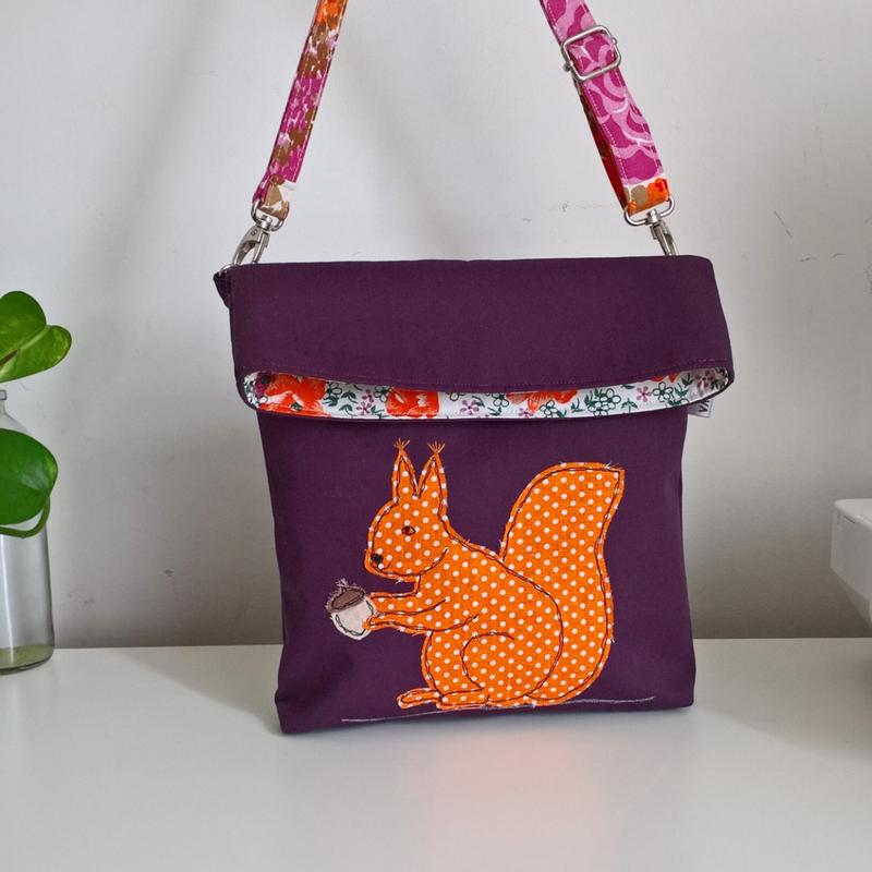 Текстильная сумка с белочкой для маленькой принцессы. Размеры 23х20 см в середине подкладка и карман ремешок на карабинах и регулируется