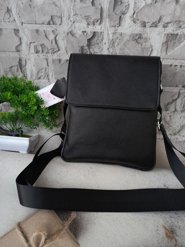 нова натуральная кожа чорна 22×26×6 см
