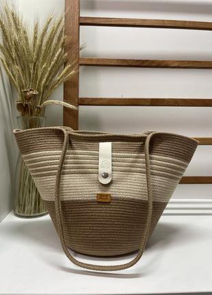 Под заказ! женская сумочка из 100% хлопкового шнура в базовых цветах: глина+натуральный Имеет следующие размеры: Высота 25 см (до ручек) Верх 40 см Дно 18 см Ручки длинные 60 см, ручки короткие 20 см Кожаный клапан на кнопке Внутри два кармана: на молнии и открытый, и сменный карабин петелька для ваших ключей Можно заказать в других цветах🌷