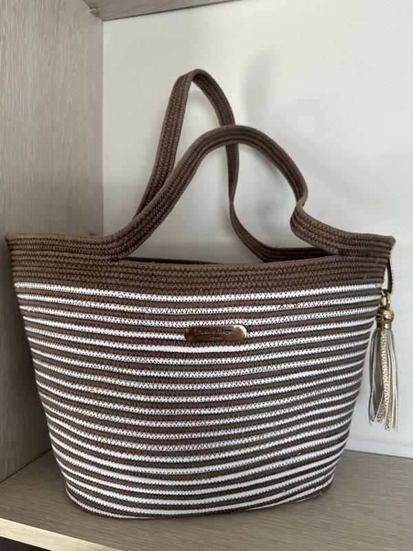Сумка ручной работы выполнена из хлопкового шнура. Размеры сумки: Высота 25 см Ширина 37 см Ручки по 50 см
