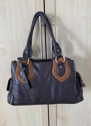 Якісна сумка з натуральної шкіри. Містка, багато відділень та карманів. Дефектів немає. 21/31см, дно 10см, ручки 50см.