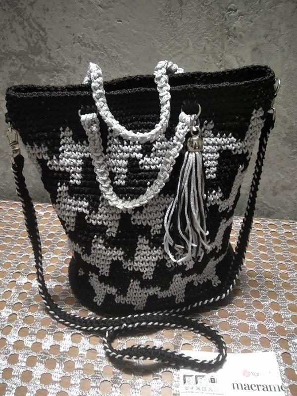 Сумочка ручной работы.Имеет ручки и ремень который снимается.Размер средний. Изготовлена из шнура макраме в стиле жаккарда.
