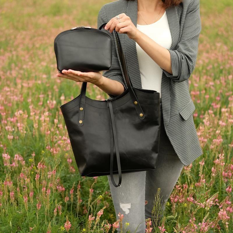 Кожаная сумка + косметичка