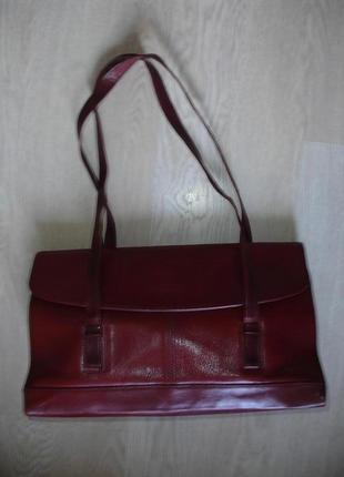 Кожаная сумка, цвета марсала, среднего размера. 35 см х 22 см х11 см. 25 см - длина ручек.
