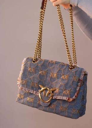 Love Bag Puff Denim logo Описание: Размер: 27х18 Материал: Текстиль, натуральная кожа Сумка Pinko Love Bag Puff Denim Logo премиум качества, изготовленная из хлопкового денима. Жаккардовый узор Love Birds Monogram расположен по всей поверхности модели и бахрома по краям. Имеет три отделения. Упаковка: фирменная коробка Pinko, брючина. Арт: 1801P