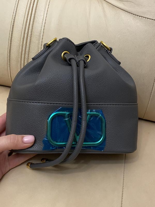 Сумка мішечок в стилі Валентіно Сіра Довгий ремінець в комплекті