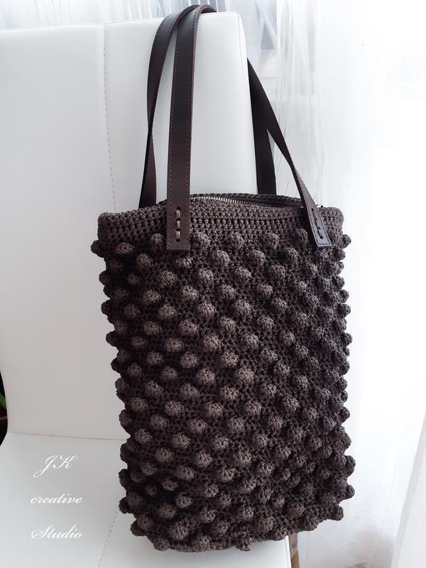 Сумочка ручной работы с шикарным узором из прочного шнура и лёгкий в уходе. Ручки и дно из натуральной кожи. Внутри подкладка с кармашком, хлопок. Размер 35х27 см. Также, можно заказать и в другом цвете! Изделия ручной работы стали трендовыми! Особенно если модель и цвет соответствуют модным тенденциям сезона! Дополнительные характеристики: Цвет : Коричневый Материал : Кожа Материал : Текстиль Модель : Мягкая Модель : Офисная Модель : Шоппер Размер: Средний Товар под заказ