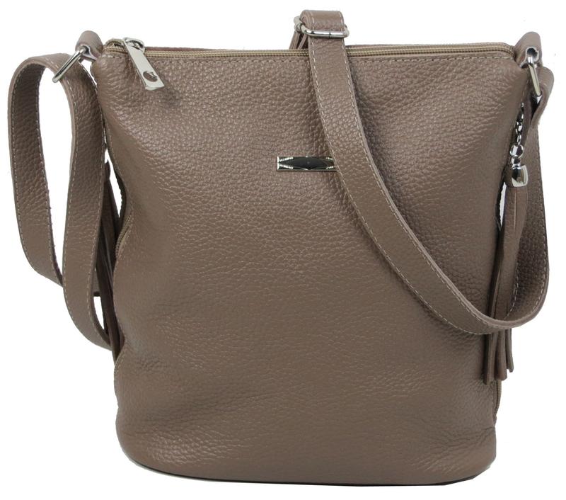 Женская кожаная сумка через плечо borsacomoda бежевая