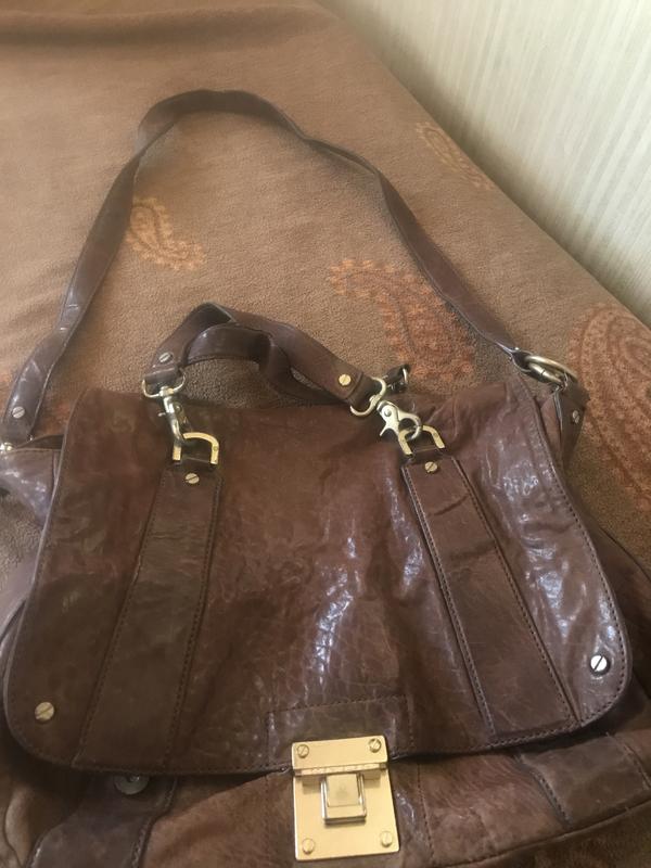 Сумка на все времена. Состареная, чуть жатая кожа , хлопковая подкладка, увесистая фурнитура . Сумка большая -20:38:6. Можно подкрасить и будет почти новая. На фурнитуре есть царапины, но это сумки не вредит .