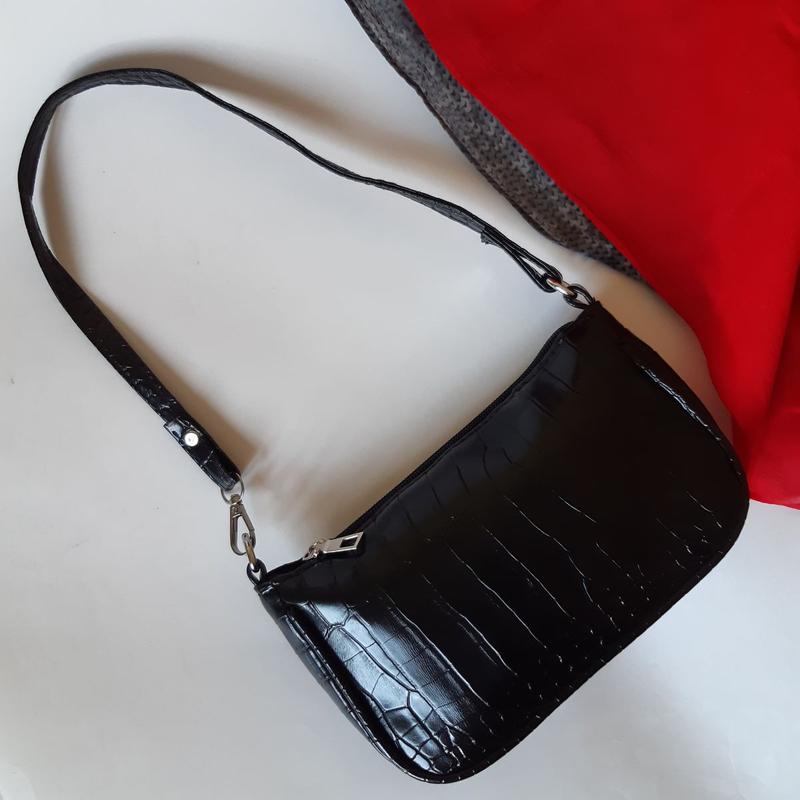 🔸 Трендовая компактная сумочка Багет черного цвета 🔸️ на подкладочке 🔸️ PU кожа с тиснением 🔸️ шир 22 × вис 13,5 см 🔸️ ремешок 57 см