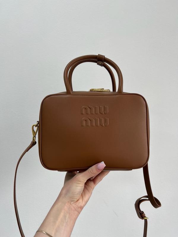 Сумка в стиле MiuMu Leather Top Handle Bag Black Размер: 24 х 17 х 10 см Кожа натуральная Сумка выполнена из гладкой кожи с фирменным барельефом. Внутри одно отделение, также есть карман на застежке. Подкладка из приятного на ощупь текстиля, есть брендовое металлическое лого. Закрывается сумка на застежке. Фурнитура металлическая и брендированная. В комплекте есть ремешок для ношения через плечо (с регулируемой длиной). Комплектуется в брендовой коробке на магнитах и пыльнике, также есть буклеты. По запросу пришлю дополнительные фото! Быстрая отправка! Наложка по минимальной предоплате