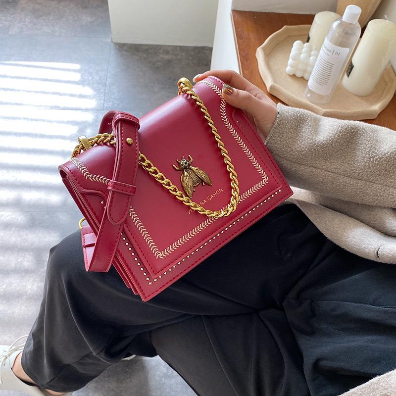 Сумка с винтажным декором пчелы сумка на цепочке, с квадратным клапаном и украшением с пуговицами Закрывается магнитом