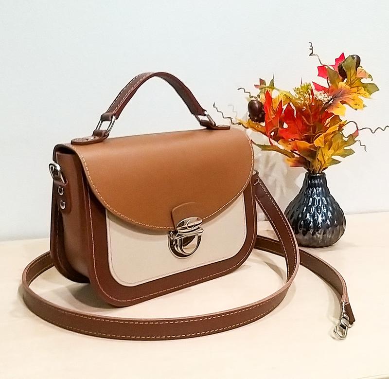Эта сумочка для тех, кто ищет что-то особенное. Нежное, восхитительное, воплощение элегантности и стиля, никого не оставит равнодушным. Наша сумочка изготовлена из гладкой натуральной кожи, внутри кожаная подкладка. Все края обработаны и покрашены вручную, благодаря чему сумочка выглядит аккуратно и дорого. Внутри сумки всего два кармана. Сумка закрывается на молнию и замок. Дополнительно можно установить молнию внутри. 🔴Вы можете выбрать любые цвета из нашей палитры и сделать из них свою уникальную сумочку, а мы сошьем ее для вас. Размер: 23х18х8см.