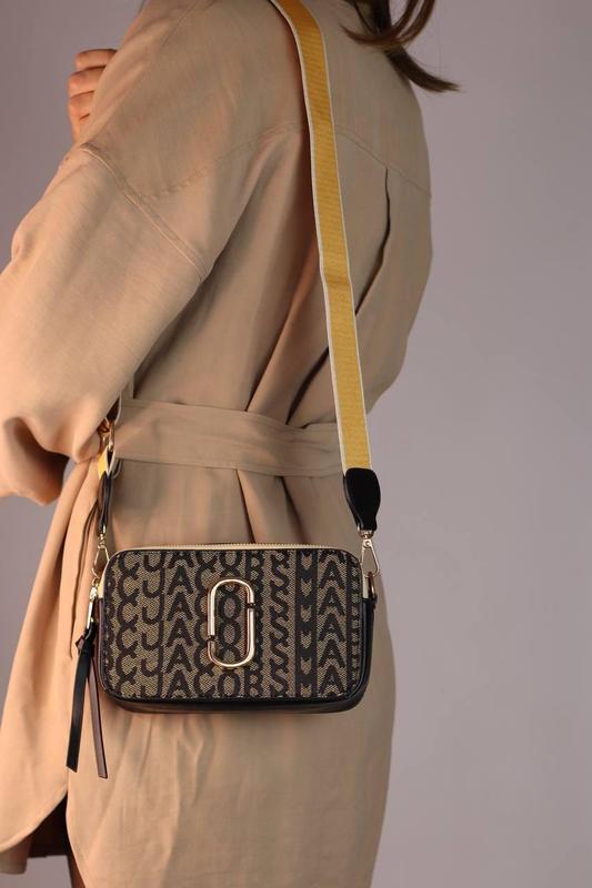 🔗 Розмір: 20х12х7 🔗 Матеріал: Текстиль/Еко шкіра Сумка виготовлена з текстилю та еко шкіри, має одне відділення, яке застібається на дві блискавки. Підкладка текстильна. Ремінь текстильний з написом бренду Marc Jacobs на карабінах, шириною 4 см, регулюється по довжині від 70 см до 115 см. На звороті маленька відкрита кишенька. Фурнітура золотистого кольору. Пакування: брендова коробка, папір, наповнювач, наліпка.