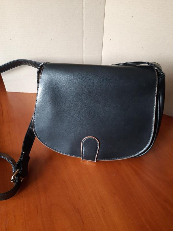черная, ремень регулируется, внутри маленький кармашек на замок, имеет на сгибах щепотки(фото)