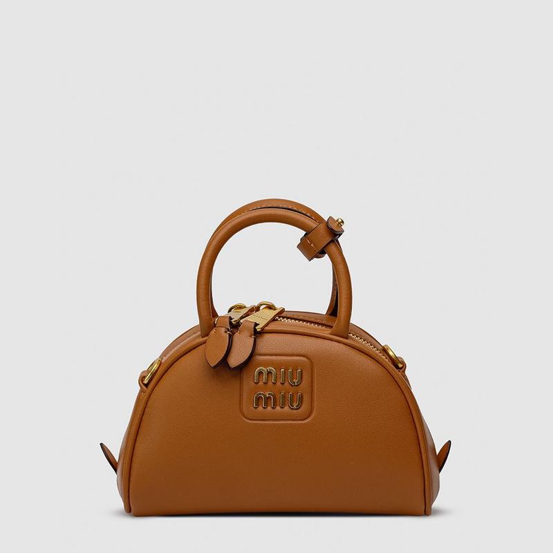 MiuMu Leather Top Handle Bag Brown (Арт: 99392) ⏺ Розмір: 17,5 х 11 х 7 см ⏺ Матеріал: Шкіра ⏺ Опис: Сумка виготовлена з гладкої шкіри. Всередині одне невеличке відділення. Підкладка з приємного на дотик текстилю. Зачиняється сумка на застібці. Фурнітура металева та брендована. В комплекті є ремінець для носіння через плече (з регулюємою довжиною). Комплектується в брендовій коробці на магнітах, пильовик, також є пакет та буклети.