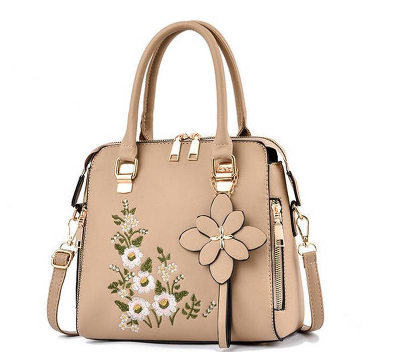 Женская сумка с вышивкой и брелком бежевая женская сумочка огородская с цветами