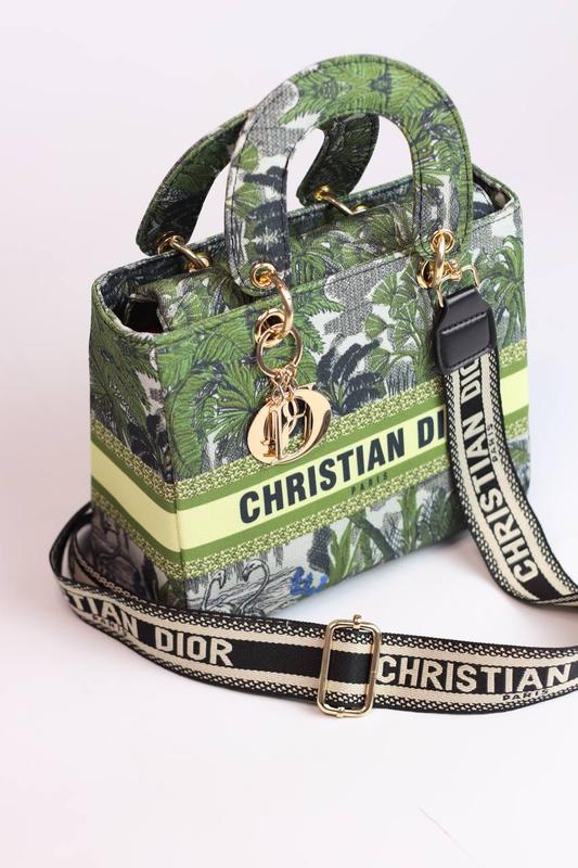 CHRISTIAN DI OR MEDIUM LADY D-LITE Green Palms Embroidery Арт: 1020 Описание: Размер: 22х18х9 Материал: Текстиль Сумка выполнена из текстиля, имеет одно большое отделение, которое застегивается на молнию. Подкладка текстильная, бордового цвета. Имеет боковой внутренний кармашек, который закрывается на молнию. Плечевой ремень - текстильный с надписью бренда на карабинах, который регулируется по длине. Фурнитура золотистого цвета. Упаковка: брендовая коробка, бумага, наполнитель.