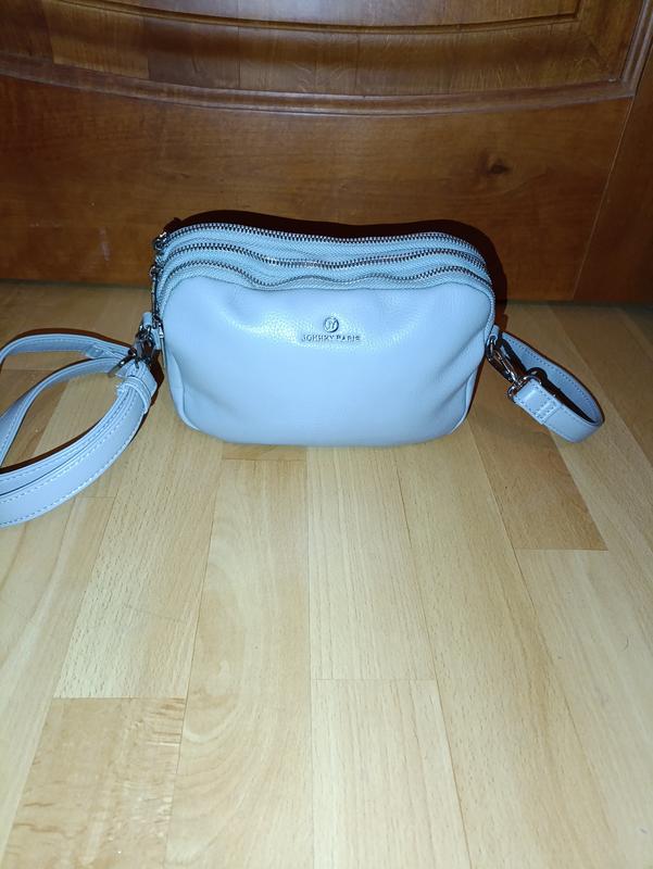 Женская сумка через плечо. Материал экокожа. 3 больших отделения на молнии, одно маленькое также на молнии. Цвет сумки: светло-голубой. Размеры сумки: 22*16*6 см. Состояние сумки новый.